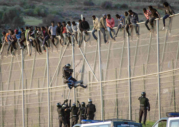 700 مهاجر تقريباً اجتاحوا السياج الحدودي الفاصل بين المغرب ومدينة سبتة الخاضعة للسيطرة الإسبانية، فجر يوم الجمعة 17 شباط / فبراير 2017