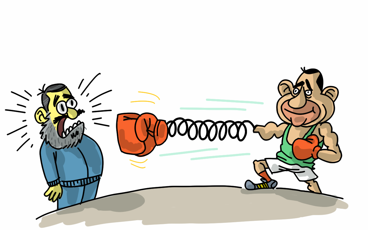 انتشرت مكاتب المراهنات في المدينة، وربحنا كثيراً. وأتى اليوم الموعود. جاء مرسي والسيسي بملابس المصارعة الحرة. وقفا في قلب الستاد وبدأت المعركة. أبلى الاثنان بلاء حسناً في الحقيقة. ضربة من هنا على ضربة من هناك. بووم من مرسي على طراااخ من السيسي. الجمهور كان يجلس مترقباً، فكل منهم حريص على انتصار مرشحه الذي راهن عليه. وفجأة، اختل التوازن.