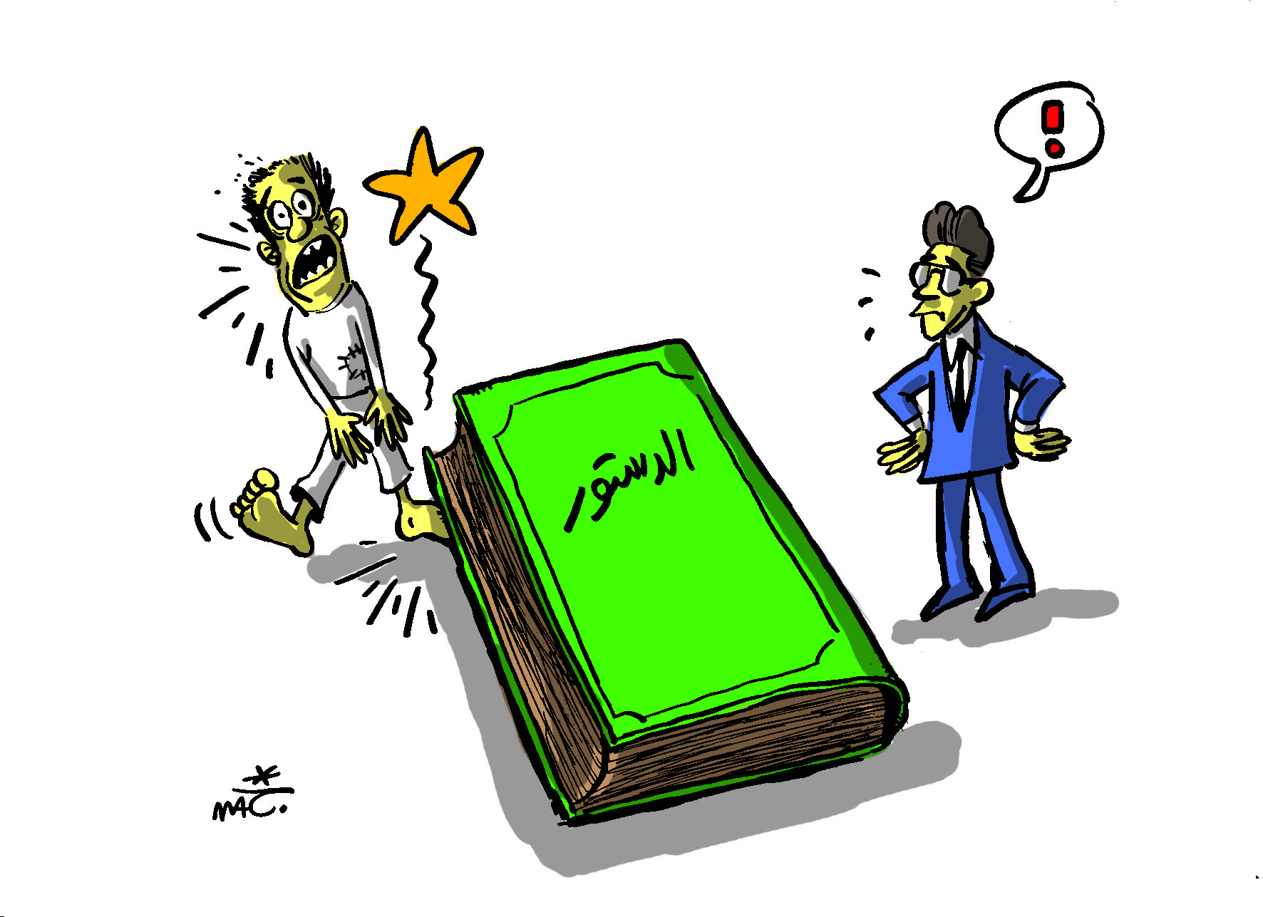 وتوالت الأحكام إلى أن كتب فقيه دستوري جهبذ أن فائض الأحكام القضائية يعني بوضوح أن البلد تحتاج دستوراً جديداً. واقترح في مقاله تبويباً جديداً للدستور الجديد، والذي من المفضل أن يبدأ بباب "الأدلة القانونية على وجود الله"، والثاني"معنى الحياة"، والثالث "تاريخ العالم"، والرابع "نكتة أعجبت الدولة"، والخامس "قصص عن أبناء القضاة والمستشارين في مصر"، والسادس "أفضل القطع الموسيقية في العالم".