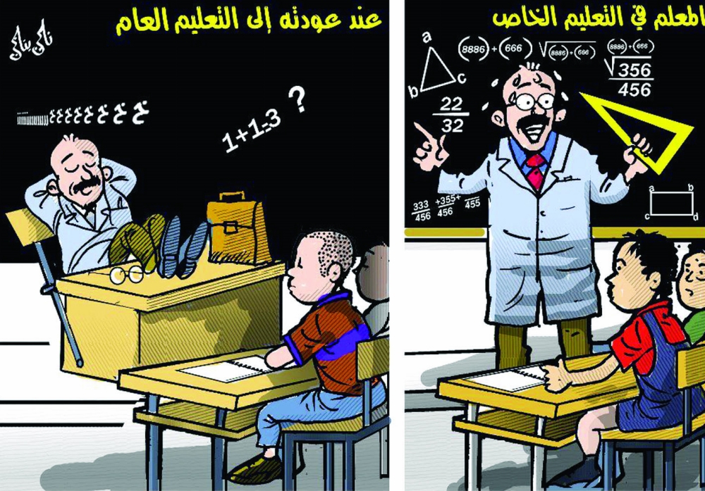 لذا، بقيت الحفلات الخصوصية التي يدفع أولياء التلاميذ كلفتها. حفلات تجري في فضاءات ملونة مضاءة مبهٍجة ترمز للأمن والنجاح. فتلميذ المدرسة الخصوصية لديه وقت ثابت يومياً للدخول والخروج، لأن احتمال تغيب المعلم الخصوصي منعدم، بينما المعلم العمومي يتغيب ولا احتياطي لتعويضه. في الخصوصي، هناك صلة بين المرتب والمردودية. يزيد صاحب المدرسة من أجر الأساتذة الأكفاء، وخاصة الذين يقومون بأنشطة موازية مع التلاميذ. النتيجة هي أن الأغلبية المطلقة من تلاميذ الخصوصي تحصل على علامات جيدة. وقد حققت ثانويات خصوصية كثيرة نسبة نجاح في البكالوريا بلغت مئة في المئة، وهذا يفرح الذين يملكون النقود.
