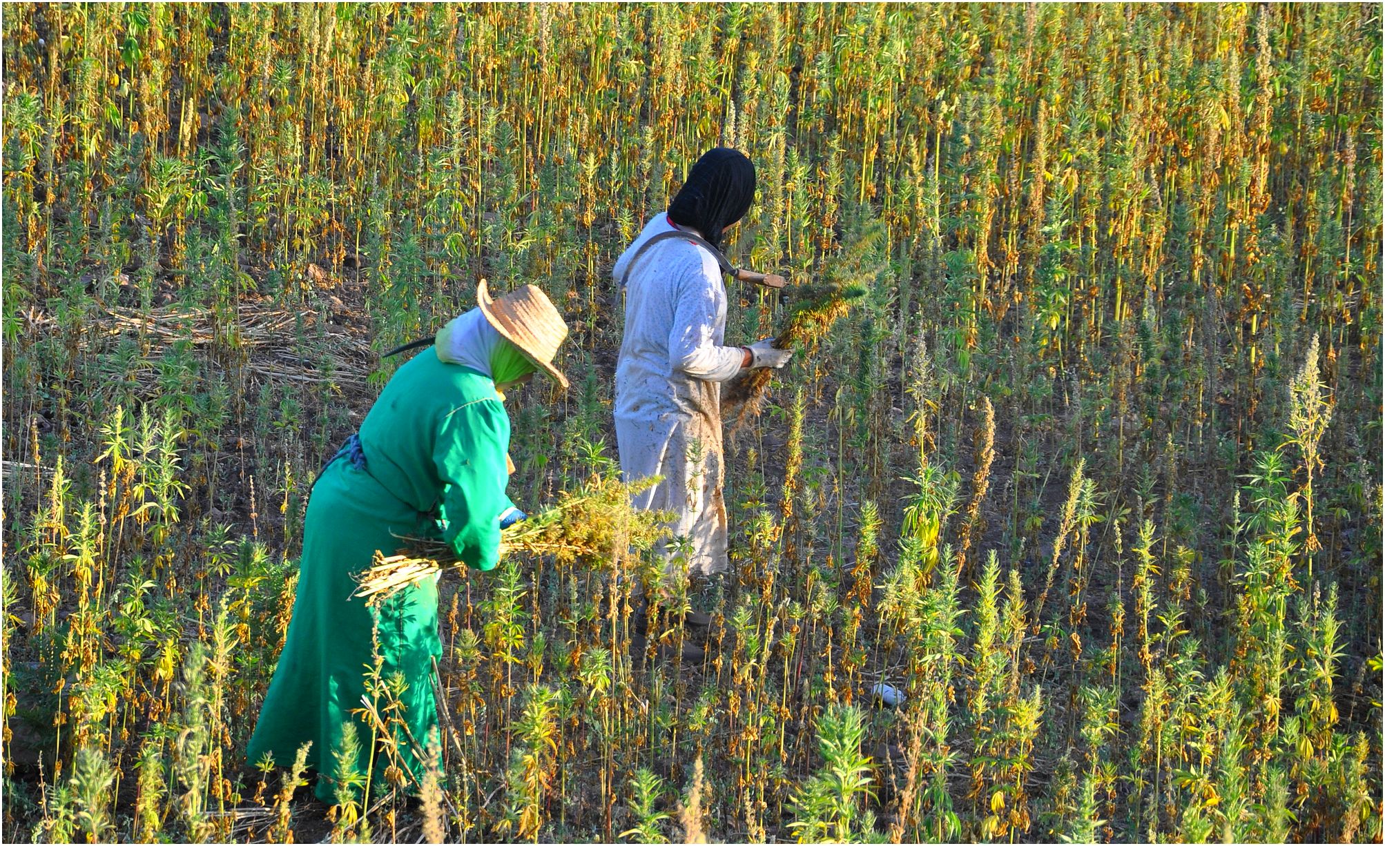 ومما يدخن، وهو سيد المجال، "الحشيش" - وهو زهرة القنب الهندي المغربي أبا عن جد - المحروق والمخلوط بالتبغ الأصفر. وحسب العارفين - وهنا جواب التلاميذ موسوعي بسبب كثرة المستخدمين في الشوارع والبيوت - يقال والله أعلم إن الحشيش منبه، وبفضله يزعم المغاربة أنهم أذكى شعب في العالم.