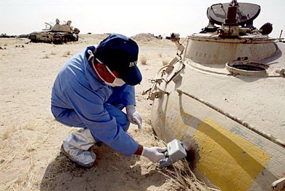 في نيسان/إبريل عام 2003، مع دخول القوّات الأميركية إلى العراق، اشتد القصف على البصرة وكان الجيش الأميركي أكثر فتكاً في هذه الحرب من حربه السابقة، على الرغم من ذريعته التي حمل شعاراتها أمام العالم بأنه جاء ليحرِّر العراق والعراقيين من الديكتاتورية. وبهدف الدخول إلى المدن العراقيّة بأسرع وقت ممكن ودون خسائر كبيرة بين صفوفه، استخدم الجيش الأميركي مرّة أخرى سلاح اليورانيوم المنضب، لا سيما بعد أن واجه مقاومة كبيرة استمرت لأكثر من 17 يوماً حين وضع قدمه في مدينة أم قصر، المتاخمة للكويت، وهي ثغر البصرة المطل على الخليج العربي. لكن هذا ليس وحده ما ساعد على جعل البصرة مدينة ملوّثة بالكامل باليورانيوم، فثمّة عوامل أخرى. فحتّى عام 2004، كان بإمكان سلطة الاحتلال، وضمن مسؤولياتها القانونية، السيطرة على عدم اتساع التلوّث في المدينة، إذ سجّل الباحث البيئي الأميركي خاجاك فروير وارتانيان 73 موقعاً ملوثاً في البصرة وحدودها، وأخبر حينذاك دائرة بيئة البصرة بالمواقع لتتخذ إجراءاتها، لا سيما أنها مواقع جديدة، وما زالت تحت إشراف الأمم المتحدة. لكن الاحتلال عمد الى تشريع النهب المنظم كما شرَّعه في بغداد، من خلال تركه الدوائر الرسمية عرضة للسرقة والحرق، إذ، وبحسب وارتانيان، فإن سلطة الائتلاف الموقتة أجازت مشروع «مايك اوشاي» الذي يسمح لكل مواطن بالحق في جمع وبيع وتصدير المخلفات العسكرية (وهي في غالبها ملوَّثة باليورانيوم) من دون كيفية أخرى. وهكذا أخذ البصريون ما ظنوه ثروات إلى منازلهم، فانتشر السرطان كما تنتشر النار في الهشيم. وبعد أن نُقلت المخلفات إلى المناطق السكنية، اكتشف فريق بحثي عراقي، بعد مسح ميداني في عام 2005، وجود تلوث إشعاعي في التربة وفي بعض النباتات بتركيز متباين من نظيري الثوريوم 234 والراديوم 226 والبزموث 214 يفوق المعدل الطبيعي الذي يجب توافره في التربة.