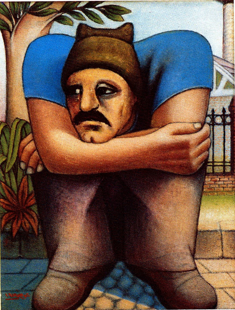وهو تعرض للاعتقال عام 1948 في افتتاح أول معرض فني له على خلفية لوحته "الجوع" (المسماة أيضاً "الكورس الشعبي")، التي تصوّر بسخرية مقهورة مواطنين مصطفّين جوعى وقليلي الحيلة أو عراة أمامهم أطباق فارغة، مذيلة بعبارة "هؤلاء رعاياك يا مولاي".