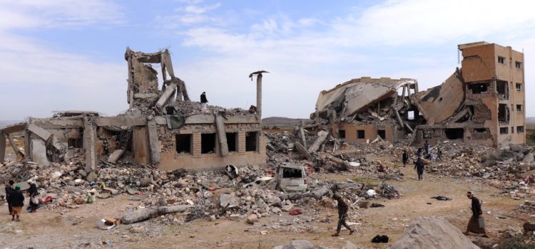 معتقل ذمار تحت الأنقاض بعد عدة غارات جوية شنتها قوات التحالف بقيادة السعودية. مصدر الصورة: صقر أبو حسن (عن موقع مركز صنعاء)