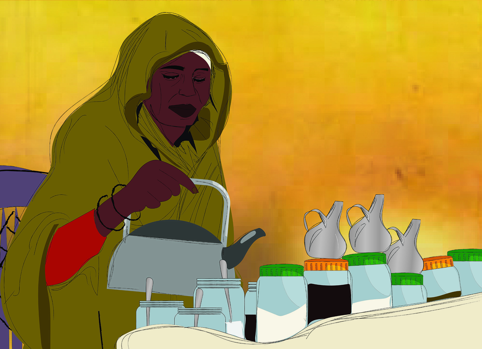 ليست حالة منى نادرة بين بائعات الشاي في السودان. فخلف كل كوبٍ قصة مؤلمة، وأسرة ممتدة تتحمل بائعة الشاي الإنفاق عليها وإعالتها في صمت، وصبر، وابتسامة في وجه الحياة، مواجِهة في سبيل ذلك بطشَ السلطات، وقساوة مجتمع يرمي بحمله على النساء، وفوق ذلك يطالبهن بأن يكنَّ نبيّات.