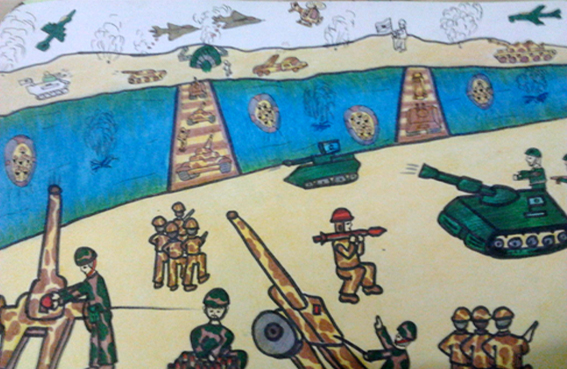 فى طابور الصباح قصص مؤثرة عن أمجاد العبور وبطولات جنودنا المدوية على خط النار وهلع الدولة الإسرائيلية وتحطم أسطورتها التي لا تُقهر. وفى النشاط المسرحي المتواضع، لا بد من تجسيد تلك اللحظة التي استطاع فيها أحد الجنود أن يرفع العلم المصري فوق خط بارليف، وهو يستقبل رصاصات العدو بينما تعلو وجهه ابتسامة النصر والفخار. وفي حصص الرسم ما زلت أذكر تلك الدبابات التي كنا نتبارى في إبراز قوة جنازيرها وسماكة مدافعها ووجوه الجنود الإسرائيليين التي كنا نجتهد أن تخرج مذعورة ونحيفة أمام سيطرة وقوة جنودنا البواسل.