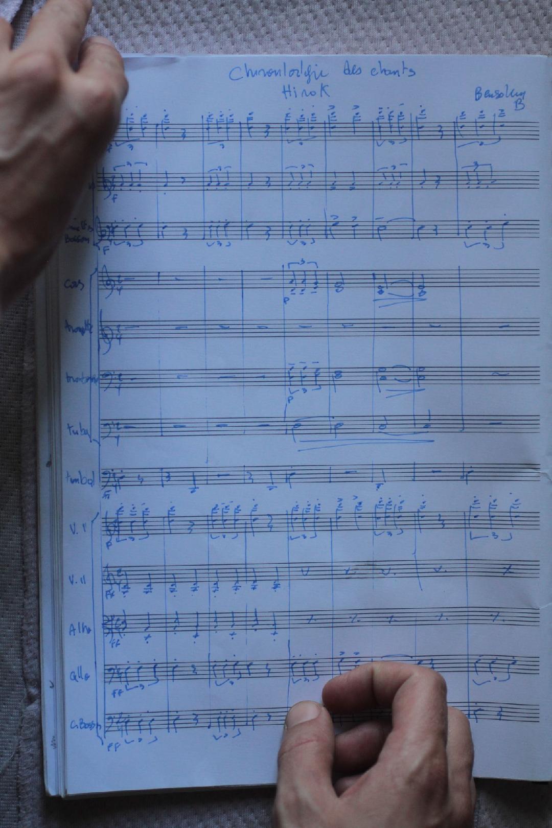 وعلى طاولته، تتراكم القطع الموسيقية. حين تسمع النموذج الذي أعده، يبقى منه شيءٌ جوهري. ليست هناك كلماتٌ ولا شعارات، لكننا نتعرف فوراً في تصاعد الحبال أو في قرع آلات النفخ، على ألحان الحراك، إيقاعه، انقطاعاته، سخطه، آماله، فقط أنغامٌ ونبضات شعب تجرأ يوماً على الحلم بمصير أفضل.