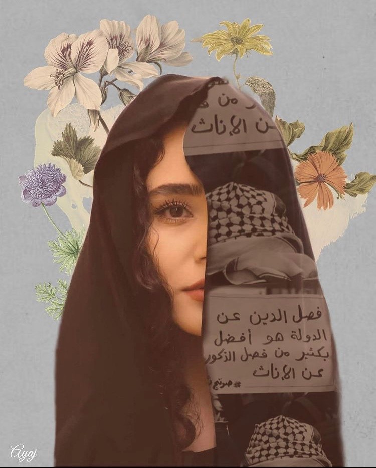 نجد مثلاً عمل ميكس ميديا بعنوان "المرأة روح الثورة" للفنانة العراقية الشابة آية جواد، تحاكي فيه اللافتات التي رفعتها النساء خلال التظاهرات والمسيرات النسوية، بعد دعوة زعيم التيارالصدري مقتدى الصدر لفصل الإناث عن الذكور في المظاهرات. نرى فتاة ذات ملامح عراقية جداً، ترتدي عباءة عراقية سوداء تزين إحدى أطرافها لافتة تقرأ "فصل الدين عن الدولة، هو أفضل بكثير من فصل الذكور عن الإناث". وفي لوحة أخرى يقف شاب وفتاة يمسكان بأيدي بعضهما البعض، ويرتديان القناع المضاد للغاز، وتبرز من ظهر الفتاة أجنحة مستعدة للتحليق بحرية، بينما يقرأ العنوان "الحب في زمن القمع"، كتحدي واضح لمحاولات الأحزاب الحاكمة تشويه صورة المتظاهرين وإصدار أحكام أخلاقية تعتمد على أفكار رجعية وبالية.