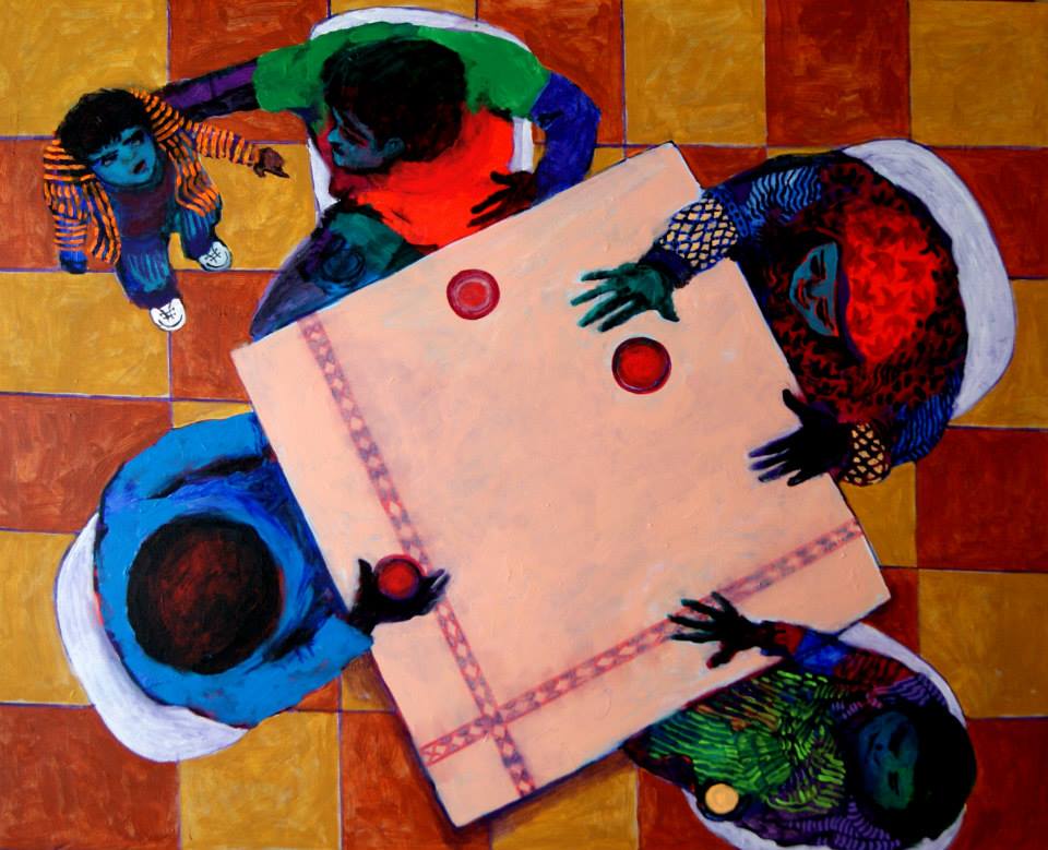 قبل الإفطار بساعات تنفطر الأجساد إلى محاور، يلاحق أحدها هاجس التسوّق من سوق الهال في الزبلطاني أو من أحد فروع مؤسسة الخزن والتسويق، أو من سوق التنابل في الشعلان، ويلاحق آخر حافلةَ النقل العام داساً بنفسه بين العروق المتصلبة بفعل الحرّ لأجساد غيره، ومحورٌ ثالث يحافظ على مظهر الصائمين في عاصمة الهاون والريف الثائر. تتكدّر الوجوه من أوّل النهار إلى آخره، تنتظر صلاة التراويح لتتظاهر بالخفّة، يصلها أذان المساجد مضبوطاً على إيقاع صوت السلاح الخفيف، ونبضات من رشقات المدفعية، تنسدل كستائر تحجب الهواء، فتتدارى الوجوه الصائمة حيثما هي بمسحات زائدة من الإيمان تبثّها صلاة الجماعة عبر مكبرات الصوت، علّها بذلك تتقي المصائر الملتبسة لصوم النهار التالي، والذي يليه.
