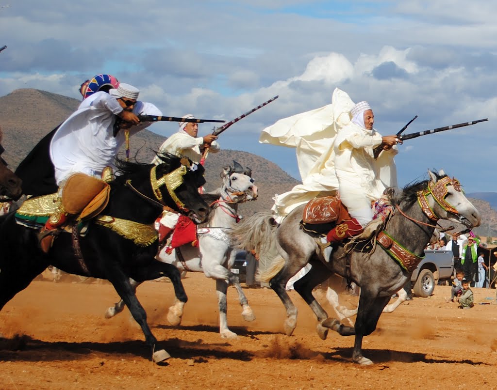 وإلى الأتراك أيضاً يعود الفضل في إدخال بنادق البارود التي حلت مكان رماح الجريد مما أعطى للفانطازيا روحاً جديدة وطعماً فريداً، لما حمله البارود من إضافات بصرية وسمعية وشمّية ساهمت في زيادة متعتها وانتشار شهرتها حتى أطلق عليها اسم "لعب البارود" للدور المركزي الذي أصبح يلعبه. وهكذا يتضح أن الفانطازيا كانت نتاج تاريخ طويل من التفاعلات الحضارية والثقافية والجمالية والفنية.. بين الإنسان من جهة والحصان من جهة ثانية والطبيعة الحاضنة لهما من جهة ثالثة، وأنها تطورت بفضل مساهمات متنوعة لتيارات فروسية كبرى كانت تمثل في عصرها أحد أفضل طرق التكيف الإنساني مع التحديات الأمنية والحربية والوجودية، كما شكل التنوع البشري والجغرافي والحضاري في المنطقة، من العرب والنوميديين جنوباً إلى الترك شمالاً، رافداً أساسياً للتنوع الكبير في الطقوس والممارسات والأشكال والألوان التي تميز الفانطازيا، وتمنحها خصوصياتها الحضارية والجمالية والفنية، وتجعل منها ممارسة تستعصي على الزوال والاندثار وتحتل مكانة بارزة في الفضاء الاجتماعي والثقافي والطقوسي لشعوب الشمال الافريقي، وتشكل تراصاً وطنياً محبوباً ومرغوباً، لما يحمله من قيم ترتبط ارتباطاً وثيقاً بالدين والجهاد والتاريخ والكفاح ومقاومة المحتلين.