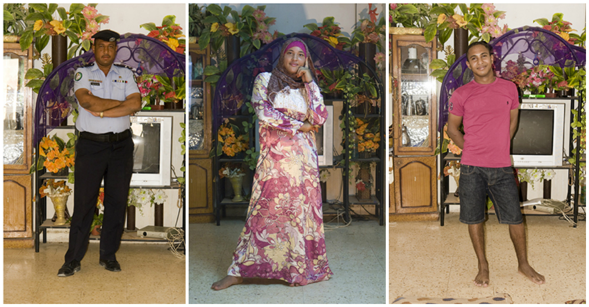 إذا تركنا هذه الأسئلة مفتوحة، ربّما ينقذنا محتوى العمل الفنّي في تلقّيه ضمن سياقه الأصلي. إذ لا يطمح لأن يمثّل تحدّياً مفاهيميّاً، ولا يستمد قيمته من جماليّات الفن المعاصر السائدة. فالعمل، بصوره والفيديو المرفق، يتخلّص من الصورة النهائيّة المثاليّة بتحسيناتها الرقميّة وملاءمتها للقيم الجماليّة المهيمنة، وهذا أفضل ما يمكن استخلاصه منه. وبدلاً من المنتَج النهائي "النظيف"، ننظر إلى صور مشوّشة وباهتة تكاد أن تختفي فيها نقطة التركيز، وبإضاءة زائدة أو ناقصة. في عدّة صور، يقف أفراد عائلة فرادى أمام زاوية مزركشة لأرفف يتوسّطها تلفزيون وتزيّنها أزهار وأوراق اصطناعيّة. يمكننا الاستنتاج أن هذه الزاوية أثيرة لدى هذه العائلة: فالأب يرتدي زي الشرطة الرسمي، والبنت ترتدي أفضل فساتينها وهي تكتّف يدها اليمنى وتضع أصبعها على خدّها في الصورة المثاليّة للفتيات الرقيقات واللواتي يتأمّلن في المجهول، أو ينتظرنه.