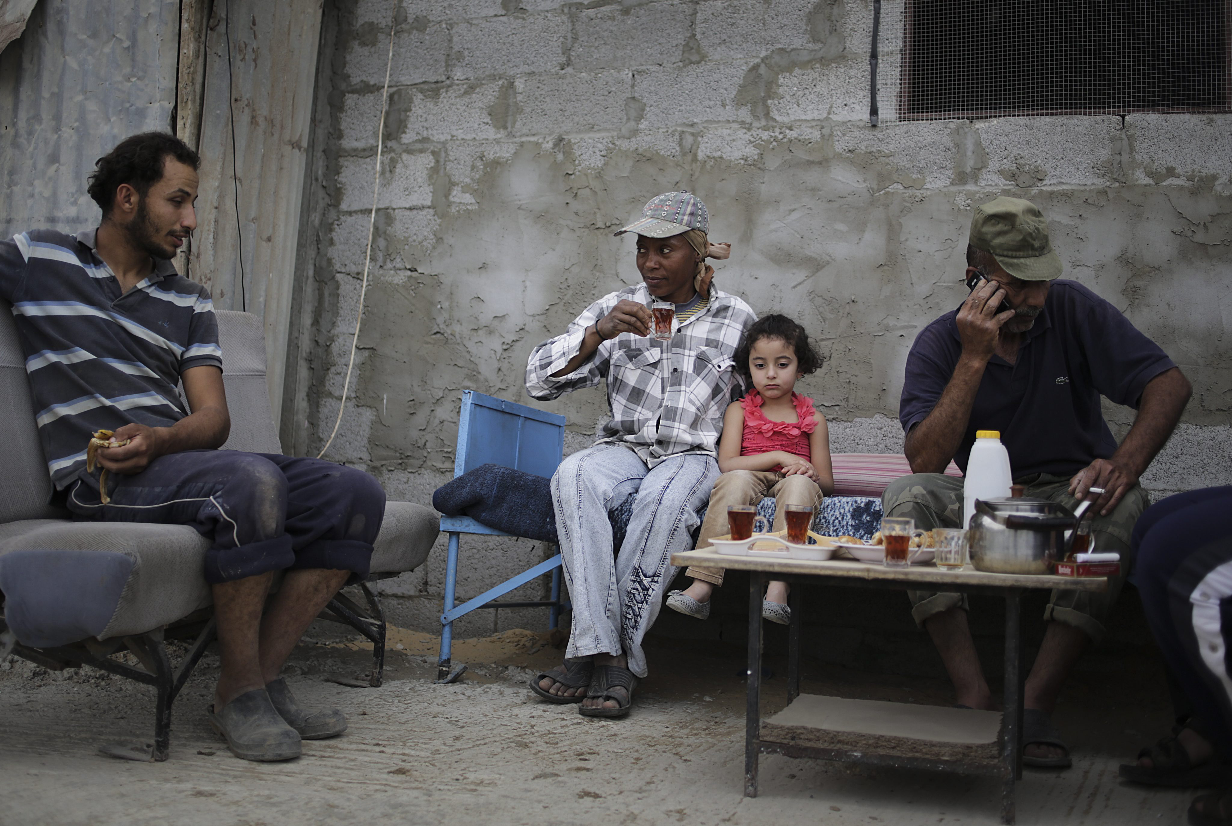 الفلسطينية "جميلة" أبو عشيبة، الفلسطينية التي تعمل منذ 20 عاماً في قطاع البناء في بيت حانون شمال قطاع غزّة. وهي تتقاضى 10 شيكل (2 يورو) مقابل نقل كل طنّ من الاسمنت، وذلك لاعالة ابنتها ووالديها (علي علي - إي بي آب)