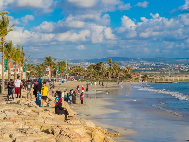 بين مساري الطريق تزيّن أعمدة الكهرباء صورٌ حزبيةٌ تستقبل الوافدين إلى المدينة وتودع الخارجين منها، وتؤكد لمن الأمر ومن هم ولاة الأمر. تحتل الرصيف طاولات وكراسٍ قرب كل مجموعة منها على الطريق ميكروباص لا يتزحزح من مكانه فيه ماكينة قهوة "إكسبرس" ("فايما" وفق التعبير المحلي). وفي ظل بعض النخلات بضع فتيات سمراوات يبعن خدماتهنّ الجنسية لمن شاء إليهنّ سبيلاً. الرصيف العريض بلا درابزين، ربما كي لا يُسرق ويُباع حديداً.. بينك وبين البحر صخورٌ كبيرة مليئة بالنفايات تحتل مكان الرمال الذهبية التي كانت. وإن كنت ترغب برؤية الرمال فعليك الانتقال إلى الجهة الأخرى من المدينة.