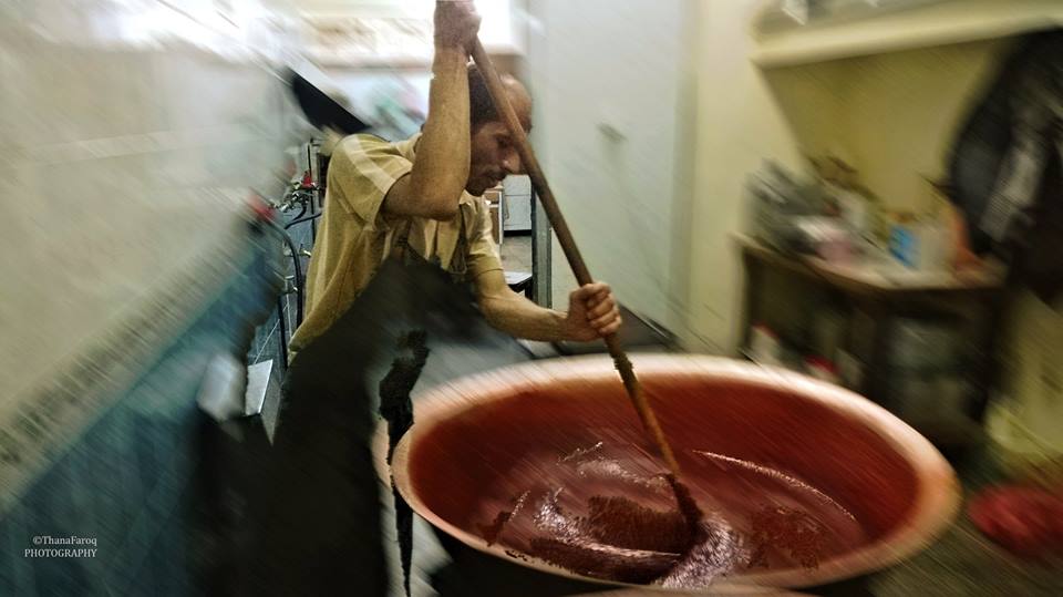 صاحب محلّ الحلاوة/الهريسة الأشهر في صنعاء يسخّر جزءً من إيراداته لاستقطاب شباب متميزين من قريته ويدرّسهم في الجامعة ويشرف عليهم إلى أن يتخرّجوا. (تصوير ونصّ ثناء فاروق-اليمن)
