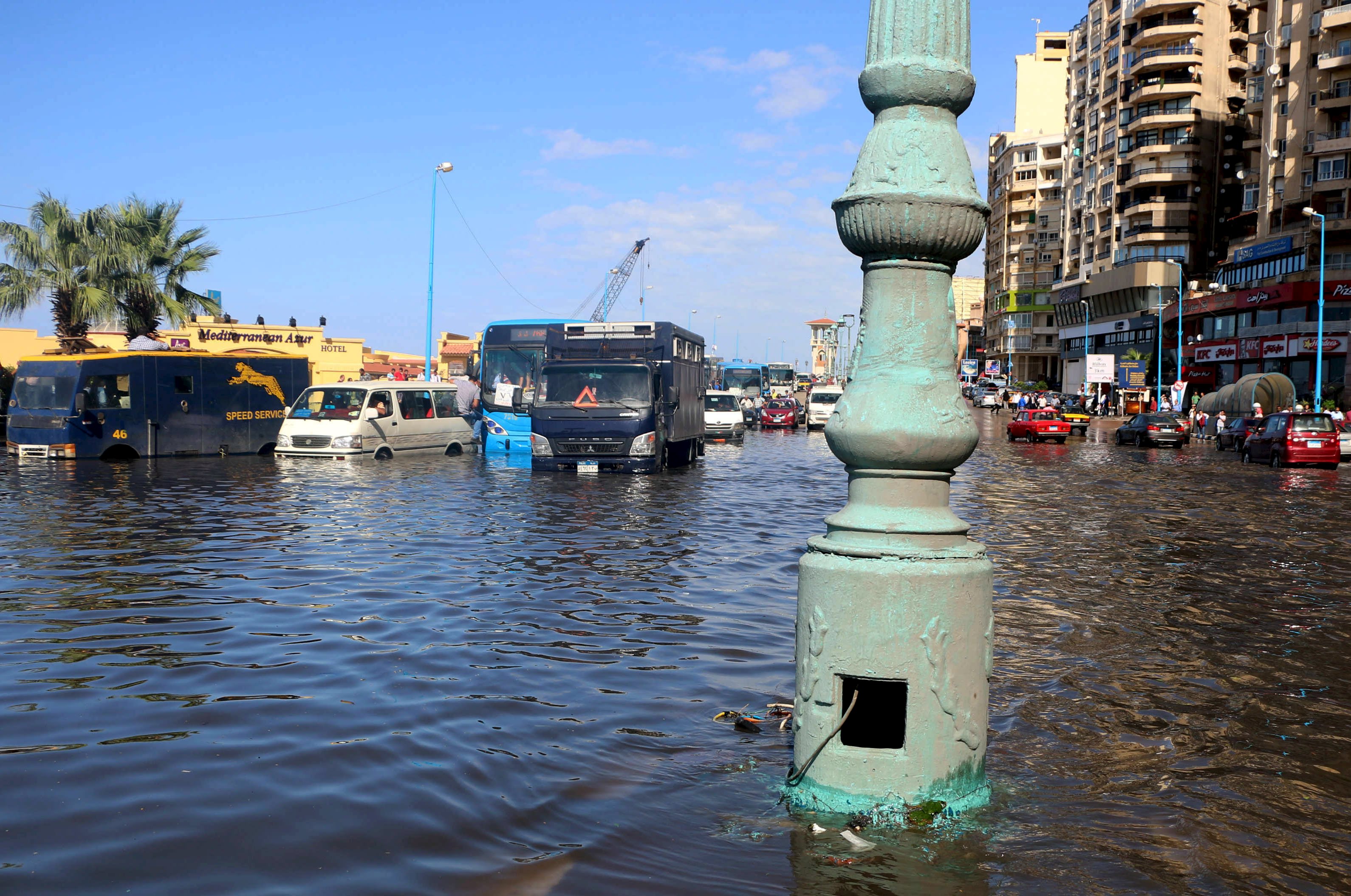 الأمطار كانت غزيرة في الإسكندرية يوم الأحد 25 تشرين الأول/أكتوبر، لكنّها لم تكن أمطار خير، فقد أدّى انسداد قنوات تصريف المياه التي لم تجر صيانتها قبل حلول الشتاء إلى حدوث فيضانات. هذا معتاد.. وليس عاديّاً طبعاً. لكنّ الأسى الأكبر هو أنّ سبعة أشخاص لقوا حتفهم، أربعة منهم توفوا نتيجة صعقات كهربائية. تبعات الأمر حتى الآن هي استقالة المحافظ وتسليم مهامه لنائبه!