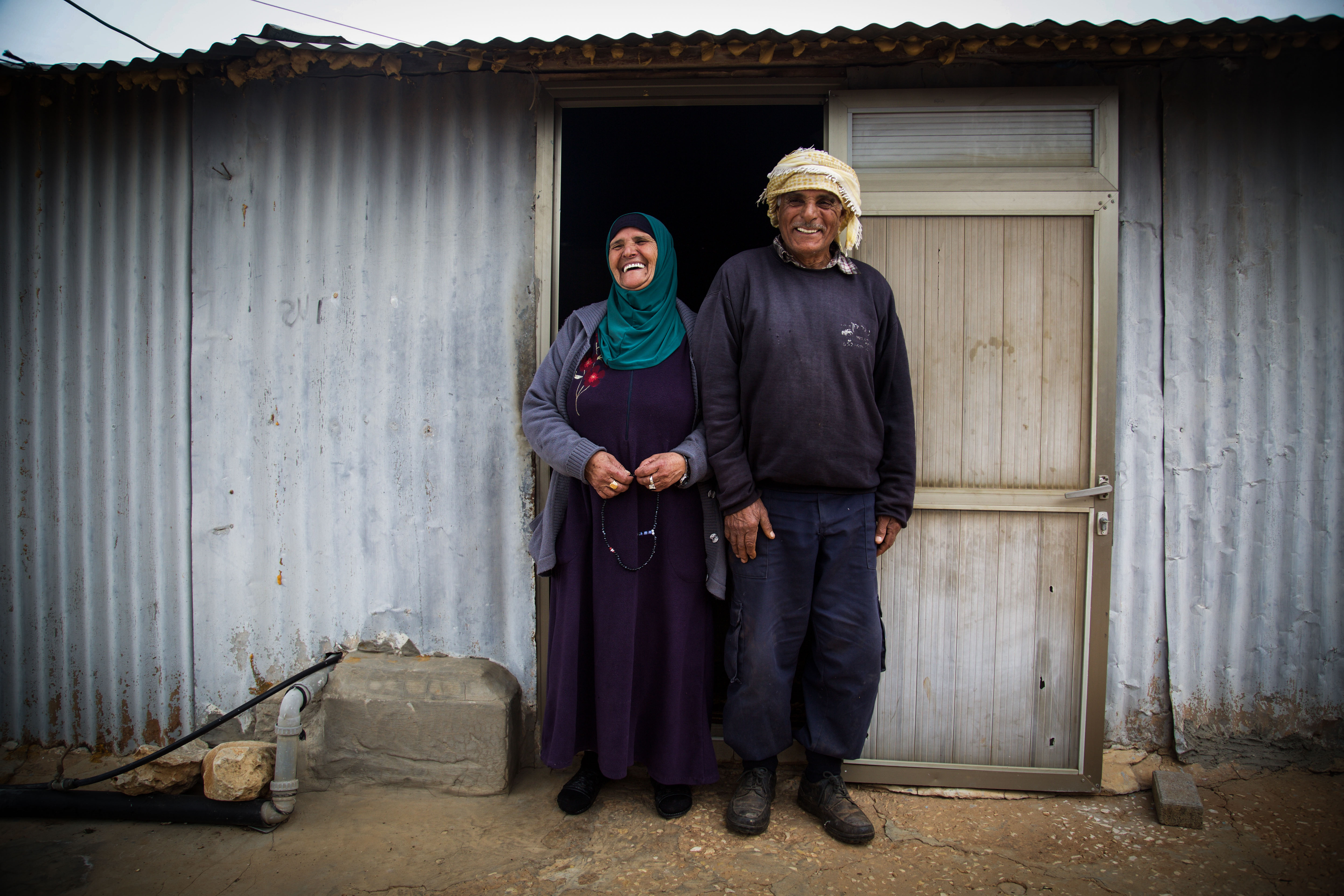 (أبو صالح وأم صالح وحفيدتاهما زينب وأسماء، تصوير: محمد بدارنة)