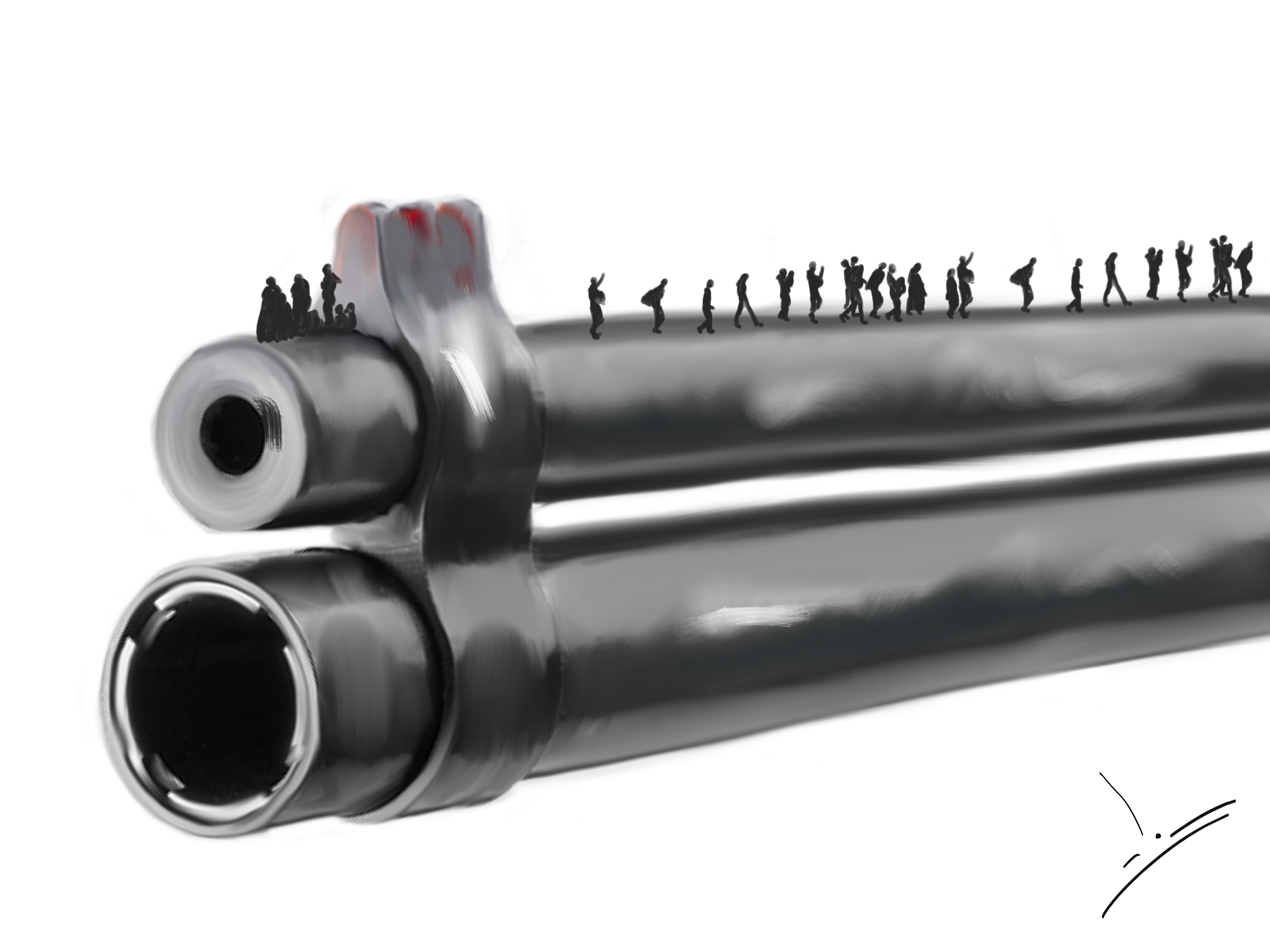 هذا الشايب أول من سألني ليش يسمونك المِيل الصغير؟ خفت منه، وشعرت بأنه خاف من خوفي منه فعرفت أنه شايب طيب. أبي، ونحن نمشي، كان يقول لي لا تخاف، بس أنا بعدني أخاف، يسموننا في اللافتات "النازحون"، ومرات يسموننا "النازحين". حينما وصلنا إلى تلك الشجرة البعيدة عن هذه البيوت، استرحنا وغسلنا رجلينا وأختي الأصغر مني صلّت، الشمس الحارة دارت وظلّ الشجرة لبد ورانا، أبي قال تعالوا بالظل، وظلينا ندور مع ظل الشجرة، أمي قالت صرنا مثل الساعة وإلي يشوفنا من بعيد يستطيع أن يعرف الوقت، أبي طويل هو الميل الكبير، وأخواتي بالأربعة وبتلاثة وبالوحدة وبالثِنتين، الأكل والجنط (الحقائب) والقمصان حول الشجرة محيط الدائرة، وأبي ينام وينهض ويزحف مع الظل وأنا بجانبه عشر دقائق أو دقيقتين وأحياناً أصير نصف ساعة، كنا ساعة لا تراها إلا الطيارات والبيوت البعيدة من فوق السطوح.