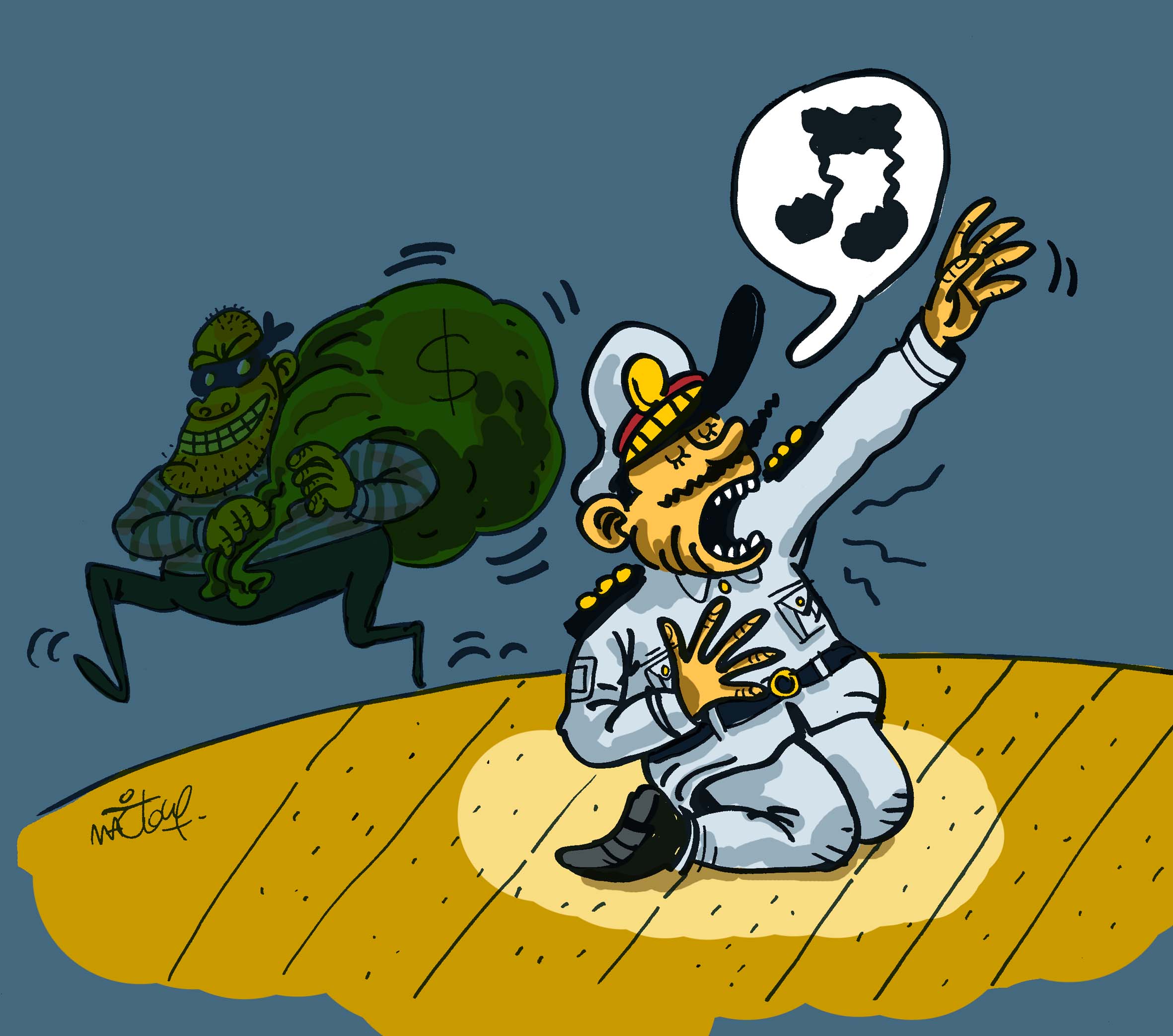 عرض مسرحي غنائي مدرسي بعنوان «الوجه الإنساني لضباط الشرطة».ضباط شرطة يشعرون بالوحدة، يغنون أغنية جماعية مهداة لمشاعر الألم والتعاسة الإنسانية:«نفوسنا رقيقة، نبحث عن الحقيقة، نقاوم الفساد.وهذه الطريقة، لا تعجب الأوغاد».ضابط شرطة رومانسي. يجلس على الرصيف. يدفن وجهه بين كفيه:«أطلقت النار كثيراً، ورجعت أبكي كسيراً، رأيتني