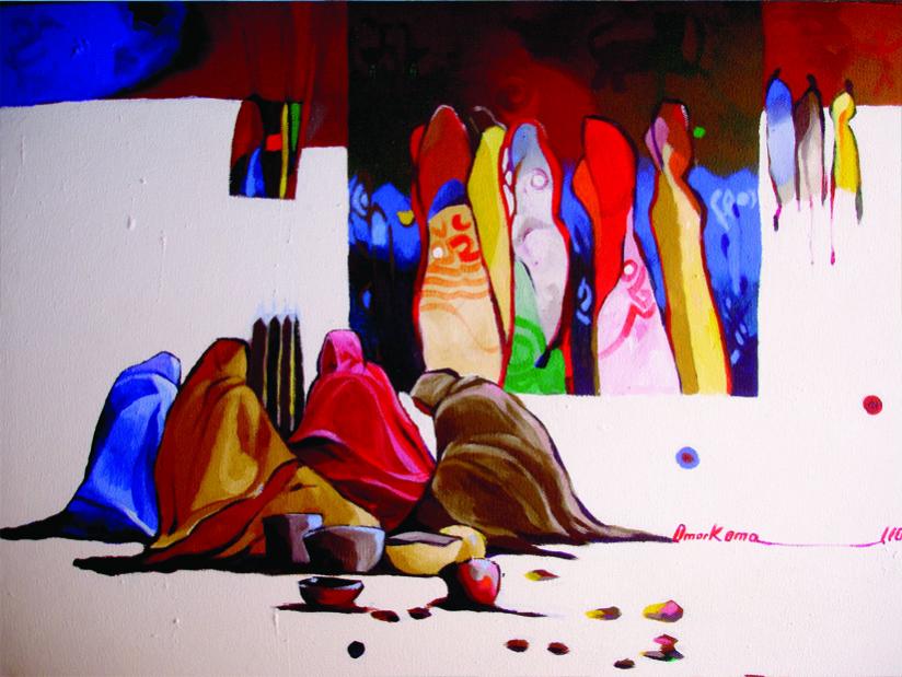 ينام الرجال تحت قِرَب الماء، تنعشهم قطرات الماء التي تتساقط على رؤوسهم تباعاً، محدثة طنيناً. يبلل الرجال عمائمهم ويتعمّمونها اتقاء حر هجير رمضان القائظ، وتبلل النساء رداءهن الصحراوي - الملحفة - هنا في جنوب شرق المغرب.