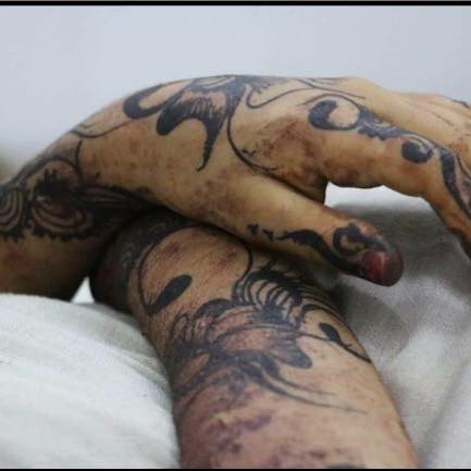 في ليلة العيد هذه، وعدت كفي بعناق قمع الحناء العيد القادم وإن طالت الحرب، متمسكة بمعايدة اليمنيين الأقدم: "العيد عيد العافية". إلا أن وعدي بوصلٍ قريب مع نقش الحناء نُكِثَ بصورة كفين تمنيت لو كانتا شاحبتين ككفي فيصبح مرأى الدم الذي يسد فراغات نقش الزهور عليهما أقل إيلاماً. الزهور المتصلة بأغصان ودوائر ووريقات خرجت من القُمع الذي لو كانت له عينين لأصيبتا بالعمى لمشهد كفي الطفلة التي أمضت ليلة العيد جثة يغطيها شال كذلك الذي يشتريه أبي لاستقبال العيد.
