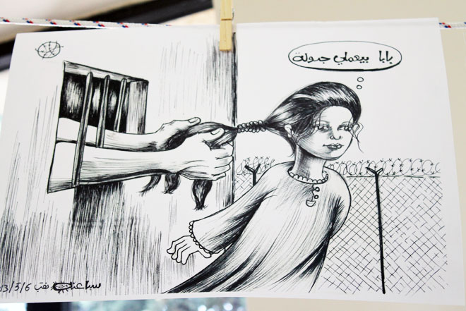 "قال لي السجّان أنني لن أجد بين المعتقلين سوى المجرمين المخيفين، وأن ما أتخيله عن أبطالٍ في السجن ينشدون لشمس الحرية ويطعمون عصافير الحرية بأيديهم غير موجود، لأتفاجأ في الزنزانة بأن الأسرى كانوا حرفياً يلتقطون العصافير التي تقع في باحة السجن ويهتمون بإطعامها وإطلاقها! صار العصفور رمزاً لهم في رسومي"، يقول.