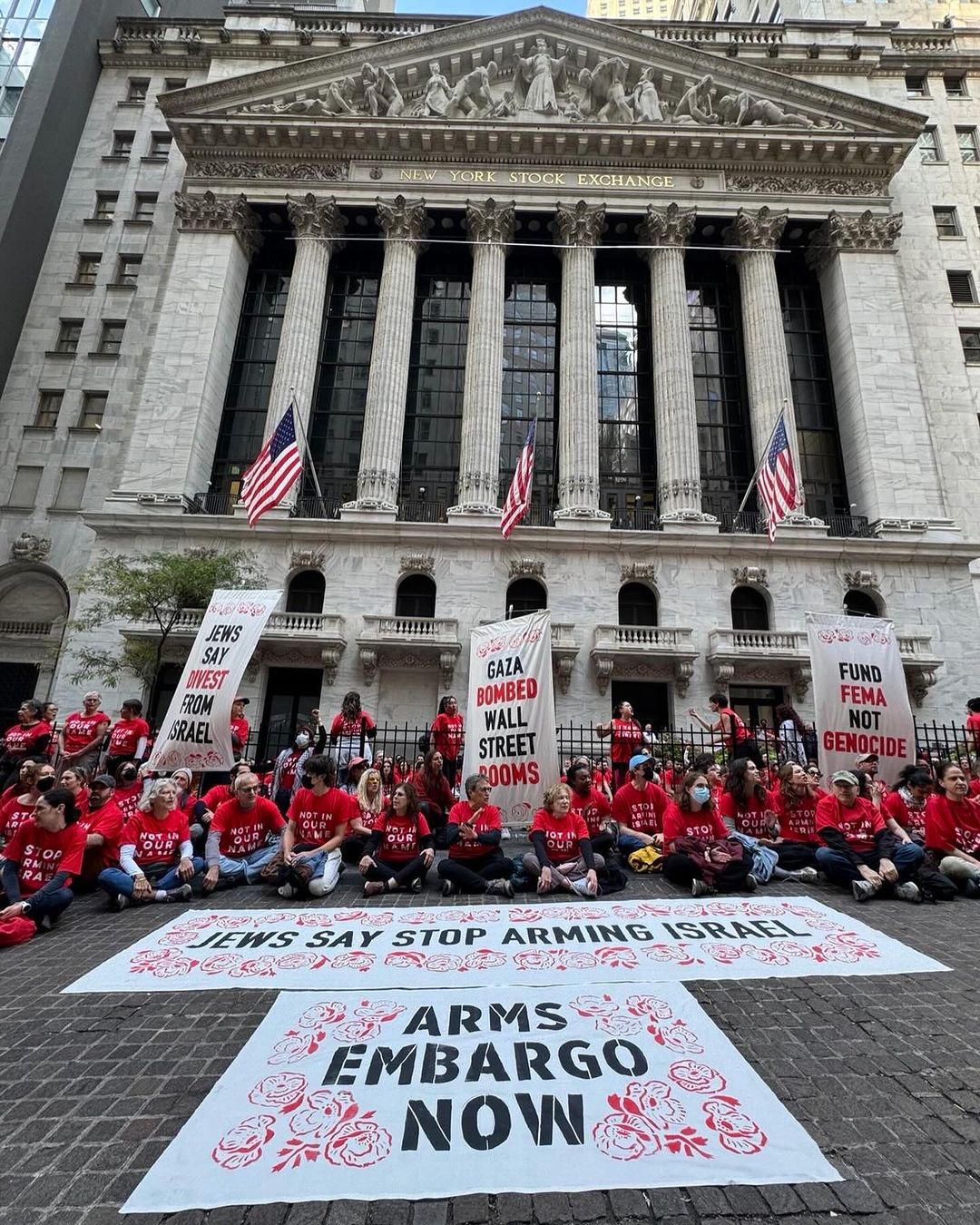 قالت مجموعة "أصوات يهودية للسلام" أن هذا الاحتجاج هو "أضخم حدث فِعل مدني أمام البورصة العالمية في التاريخ"، أمّا لماذا كانت البورصة هي الوِجهة، فلأن المكان هو "مركز الرأسمال العالمي"، بحسب المجموعة التي ترى أن الأرباح تحرِّك هذه الإبادة، وتتهم بالتالي مقاولي ومصنعي الأسلحة الأميركيين بالسعي لاستمرار العنف الوحشي في غزة، كما بتوسيع الحرب لتشمل لبنان.
