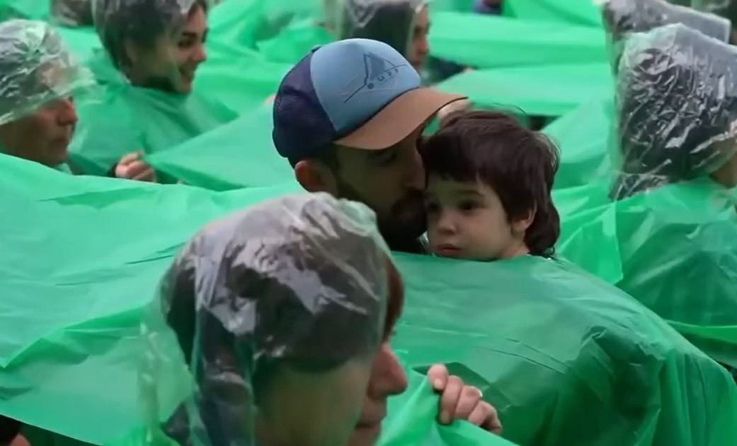 نُسرِّع اللقطة إلى "غرنيكا" الحالية، ومن ساحة سوقها الرئيسي نفسها التي قصفها النازيون منذ أكثر من 80 عاماً. أفراد وعائلات وصغار وكبار وباسكيون وإسبان ومهاجرون، يتوافدون إلى الساحة في يومٍ ماطر لابسين رداءات بلاستيكية واقية، وحاملين قطعاً نايلونية بألوان حمراء، خضراء، سوداء وبيضاء.
