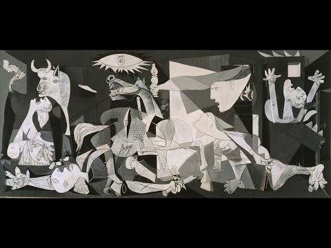 كثّفت لوحة بيكاسو، في مشهد بانورامي واحد، الأهوال والفظائع التي خبرتها المدينة: صرخة الأم، الطفل المدمَّى، الجسد المشظّى، حطام البيت، حتى الحصان والثور والحيوانات التي عاشت بين البشر تعلن رعبها.