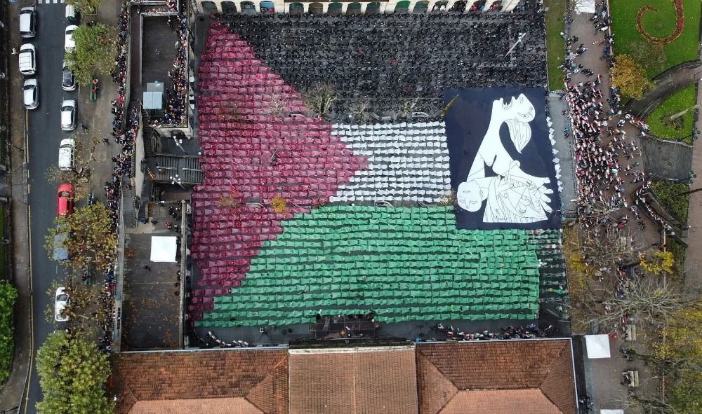 فيديو عن تظاهرة الفسيفساء البشرية المتضامنة مع غزة في مدينة غرنيكا: