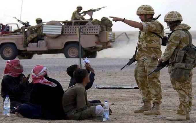 في سياق حديثه، يقول إن "هذا الجزء من العراق، يتواجد فيه الشيعة. حين كان البريطانيون يحاربون صدام" (مرة أخرى، يشير إلى الاحتلال كأنه فعل دفاعي، نيابة عن العالم والعراقيين، ضد صدام حسين) "كانوا كلهم (الشيعة) يساندون وجود البريطانيين هنا لكرههم صدام".