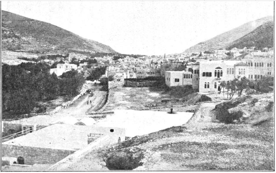 وادي نابلس عبارة عن سهل زيتون متصِل، سواء عند مدخل المدينة أو عند بوابة الخروج منها، ويمتد كذلك من سفح جبل عيبال إلى سفح جبل الطور، ثم إلى أبعد من ذلك لعدة أميال. الزيتون هنا عمره آلاف السنين. يصعب أن تجد شجرة أكثر تميزاً من هذه في الشرق، بلونها الأخضر الرمادي الباهت، وجذوعها الغامقة العطرة. يبدو أن أشجار الزيتون في إيطاليا وجنوب شبه جزيرة القرم مختلفة تماماً عن هذه.