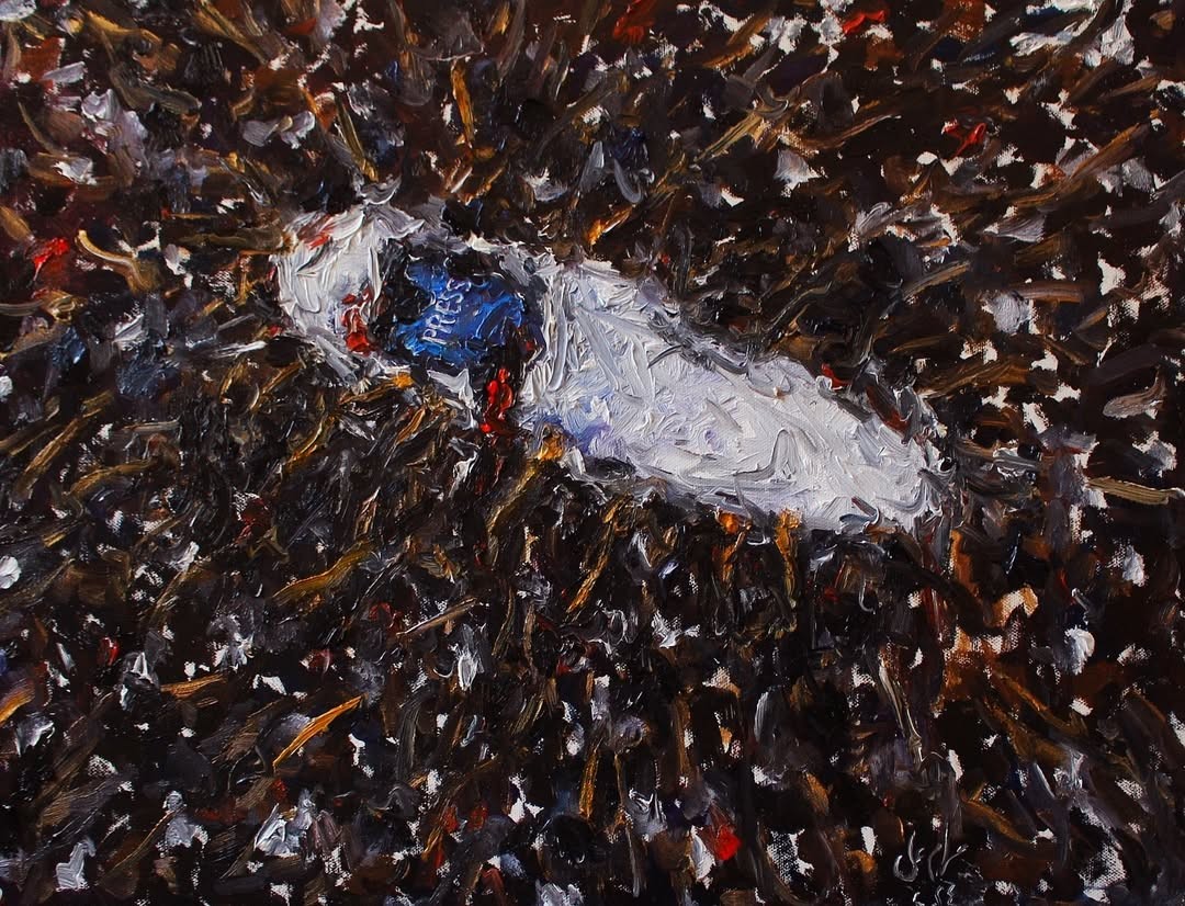 لوحة للفنانة الفلسطينية مرام علي، عن شهداء الصحافة في غزة
