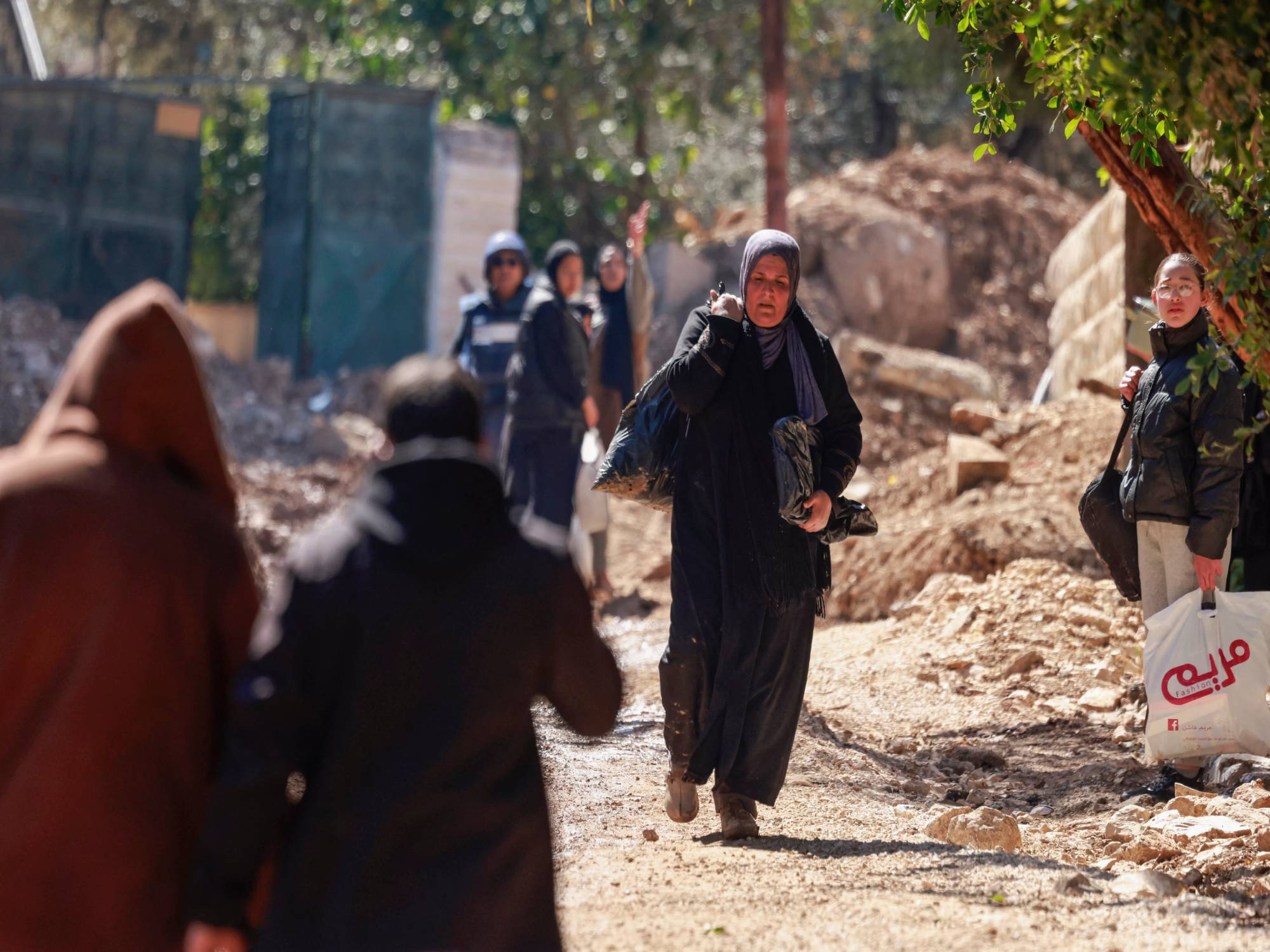 نازحون من مخيم جنين يحملون بعض ممتلكاتهم أثناء نزوحهم. تصوير جعفر اشتيه. أ ف ب.