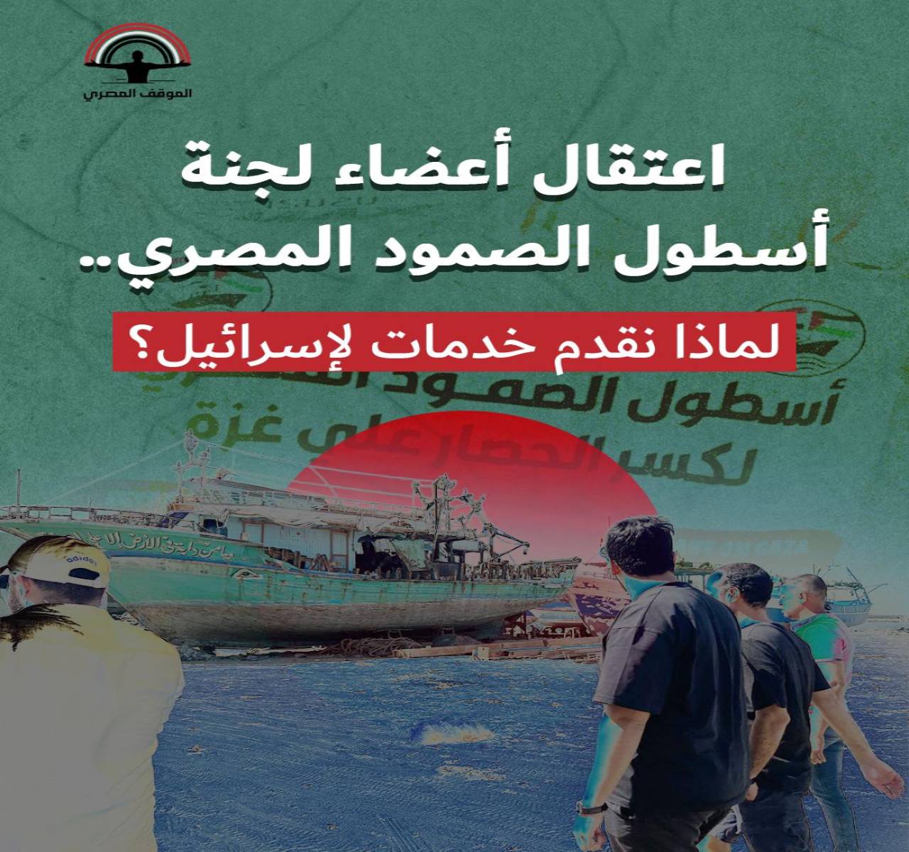 - كل التضامن مع أعضاء أسطول الصمود المصري المعتقلين، ومع كل المعتقلين المصريين لمجرد تضامنهم أهلهم في غزة ومحاولة التحرك لإيصال المساعدات الإنسانية.