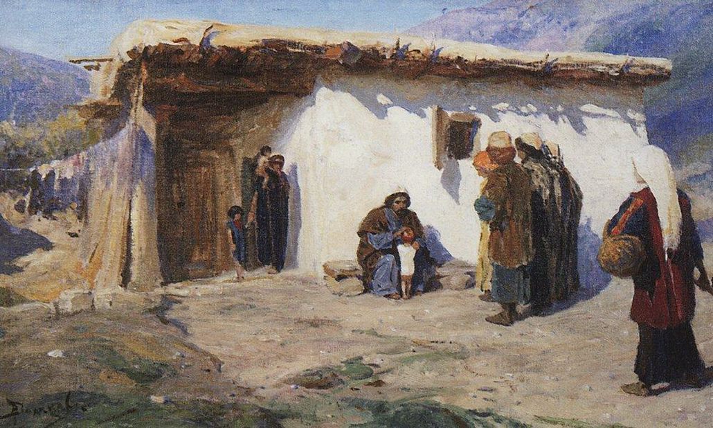 كان الفنان الأرمني السوفياتي يغيشي تادوفوسيان (1870-1936) أحد تلامذة بولينوف. يقول في مذكراته التي كتبها في تفليس (تبليسي) سنة 1932: " في عام 1899، دعاني فاسيلي دميتريفيتش لمرافقته إلى الشرق، أي إلى مصر وفلسطين. وافقتُ بسعادة، وقضينا رحلة رائعة معاً. كان فاسيلي دميترييف يرسم رسومات تخطيطية بسرعة وطاقة هائلة، مما أثّر بي. بعد رحلته الأولى إلى فلسطين، كان الهدف من رحلته الثانية تصوير مناظر طبيعية لسلسلة من اللوحات من حياة المسيح. أينما ذهبنا، كان يروي لي تاريخ المنطقة بأكمله، بما في ذلك وصف جميع معالمها. لم يكن نهج بولينوف تجاه المسيح دينياً، بل واقعياً للغاية. كان يتخيل كل مشهد في أجواء معاصِرة، يومية، في الشرق (كما لو كان يحدث الآن)، بدون أي معجزات بالطبع، ويُظهِر المسيح بقوة إنسانية مثالية أخلاقية. ذات مرة، قال لي في مرسمه: "لا أعرف كيف تتخيل المسيح. بالنسبة إلي، في الحياة، أرى أناساً ذوي سمات طيبة، تُذكرنا بالمسيح".