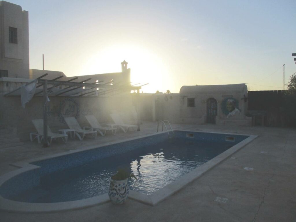 نُغادرُ القبو وقد اختزنت ذاكرة كل منا مشاهد ورسومات وتصاوير ومنحوتات تستلهم التراث في أدق جزئياته وتفاصيلهِ. فتدغدغ أنوفنا روائح أطعمة زكية، "إنها ورشة الطبخ" يقول لنا صاحب الدار، وهي ورشة تُشرف عليها سيدة قديرة في مجال الطبخ تعلّم الراغبات والراغبين في إتقان الأكل المحلي، أسرار المطبخ التونسي. نصعد درجات قليلةٍ نحو القاعة العلوية وهي قاعة مسقوفة بسقف من اللوح، وازدانت بالأنتيكا: راديو قديم، أشرطة تسجيل، دفوف، آلات نسج يدوي، أواني فخارية ضاربة في القدم.. في هذه القاعة تُعقد الاجتماعات، وتنظَّم الورشات والدورات التكوينية، وتقام الاحتفالات.. يؤجرها مالكها لمن أراد من منظمات المجتمع المدني أو النوادي الثقافية، مقابل مبالغ معقولة، بعيداً عن شطط أسعار أصحاب الفنادق من فئة خمس نجوم، وهي تتحول يوم الأحد إلى قاعة مطعم، إذ تفتح "دار الجيلاني" أبوابها كل يوم أحد من كل أسبوع للزوار، مممن يرغبون في قضاء يوم الراحة فيها، مع توفير خدمات الأكل (فطور الصباح والغذاء)، وتقديم وجبات تراثية قديمة، مع إضافة إمكانية السباحة صيفاً في المسبح الملحق بأجنحة الإقامةِ.