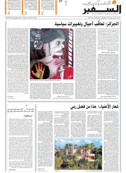 تعيش الجزائر تراجعا يتطابق مع إيقاع الوضع الصحي لرئيس صامت وعاجز عن ترؤس مجلس الوزراء طيلة أشهر عدة. وقد هدف اجتماع الحكومة في 29 أيلول/سبتمبر الماضي إلى وضع حدّ للشائعات حول تدهور صحة عبد العزيز بوتفليقة. وهذه إدارة إعلامية لمسألة صحة الرئيس، وأما البلاد فلم تعد في الواقع محكومة حقاً. فالأمور اليومية تصرَّف تباعاً من خلال صورة رئيس وزراء يسنده كليا «جهاز الاستخبارات والأمن»