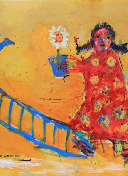 لديَّ ذكريات قوية عن العلم الفلسطيني تعود إلى عهد الطفولة. خلال الانتفاضة الأولى، كانت أمّي تدفعنا لأن نرسم المثلث الأحمر والخطوط المتوازية، الأسود والأبيض والأخضر، على ورق المسوَّدة. وما إن تنتهي الرسوم حتى تخبّئها تحت أسرّتنا وتحذّرنا قائلةً: "هنا لن يستطيع الجنود أن يعثروا عليها، إذا رأوها أخذوكم". ذلك كان فَرْضُ الرسم المنتظم بعد الظهر من كلّ يوم: ارسموا، افرحوا، خبّئوا، واحفظوا