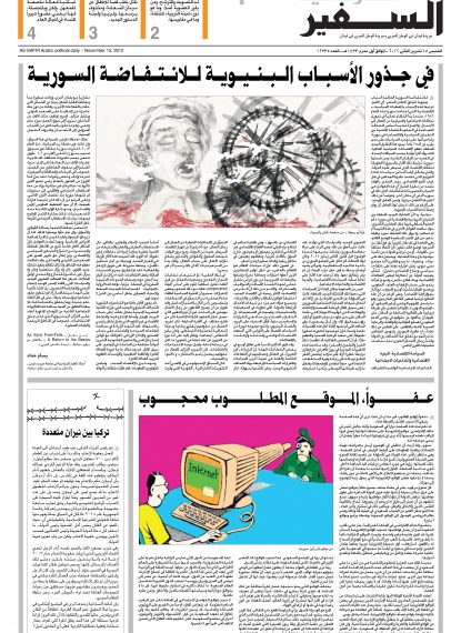 "عفواً الموقع المطلوب غير متاح، إن كنت ترى أنّ هذه الصفحة ينبغي ألاَّ تحجب تفضّل بالضغط هنا".قد تعترضك هذه الصفحة مراراً في السعودية وأنت جالسٌ تُبْحر في عالمك الافتراضي. مواقع إلكترونيةٌ على مختلف أنواعها يُعمِل فيها المراقب مقصّه فيحجبها لأنّه يرى في كينونتها شيئا ما خطِراً يفضّل أن يحمي مجتمعه منه.ممنوع، وإذا أردت أن تناقش في الموضوع أرسل باعتراضك لهيئة الاتصالات وتقنية المعلومات