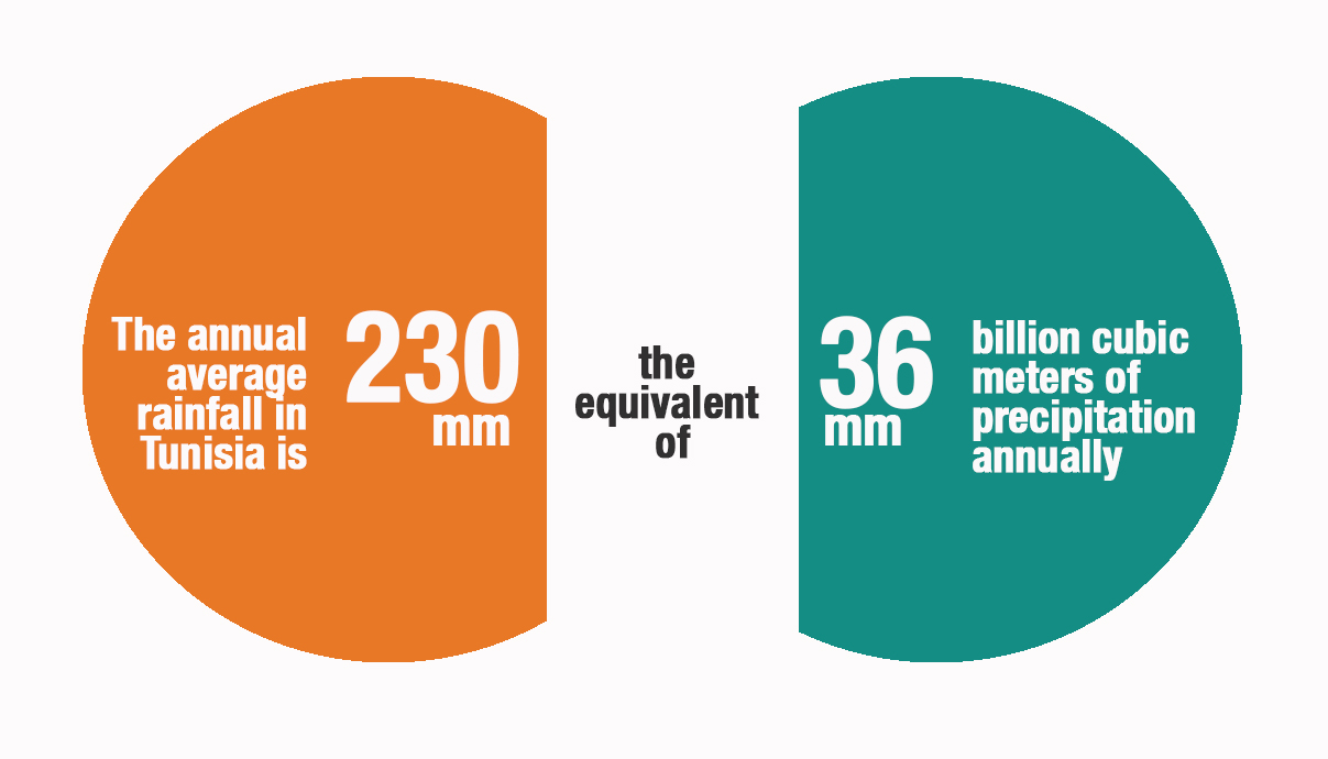 There are three main problems; the first of which concerns rainwater harvesting systems such as dams and mountain lakes. Despite enormous investments and national strategies, there are significant shortcomings in this area. The storage capacity of dams and similar facilities is still insufficient to accommodate the precipitation waters, which are largely wasted in vain and into the sea or bogs, despite them being already limited. Even this limited storage capacity is not guaranteed, as many Tunisian dams lose up to 40% of their storage capacity due to sediments and lack of maintenance.